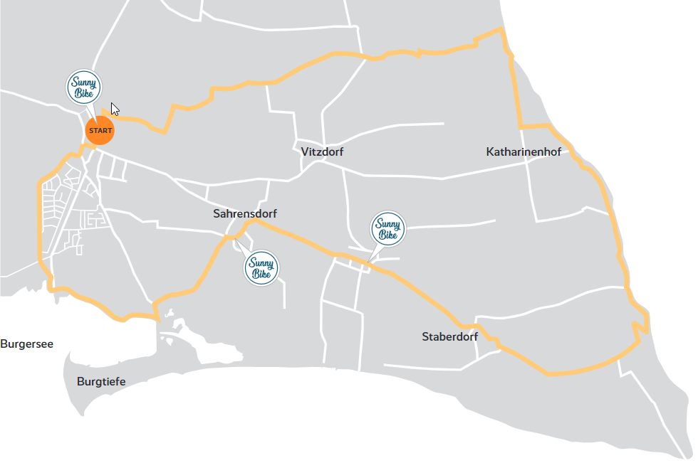 Vom Parkplatz Ost in Burg führt uns diese Tour auf kleinen Feldwegen nach Gahlendorf und weiter an die wunderschöne Steilküste bei Katharinenhof. Weiter geht es mit tollem Ausblick auf die Ostsee bis zur Marineküstenstation, ein Abstecher zum Leuchtturm Staberhuk ist zu Fuß möglich. Über die Dörfer Staberdorf, Meeschendorf und Sahrensdorf erreichen wir den Burger Binnensee. Am nahegelegenen Südstrand kann man schwimmen oder am Hafen in Burgstaaken schlendern und einen Kaffee trinken gehen. Unser Ausgangspunkt ist von dort nur noch wenige Radminuten entfernt.